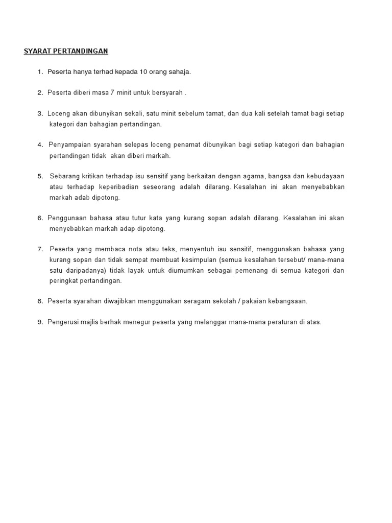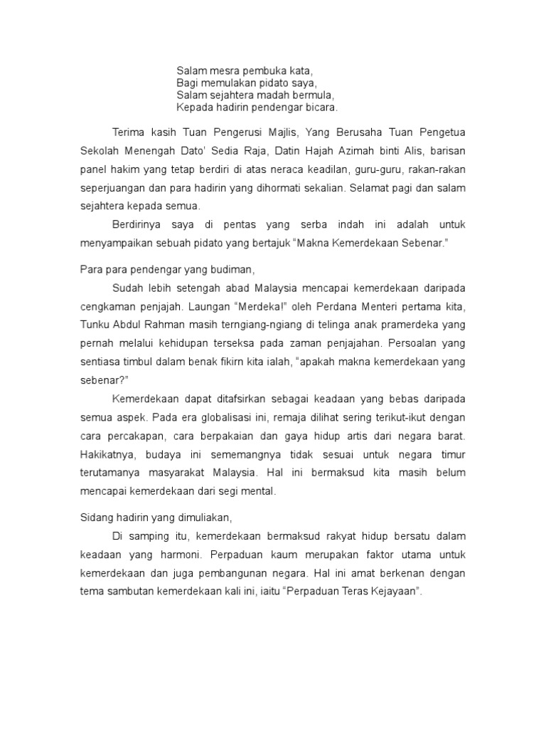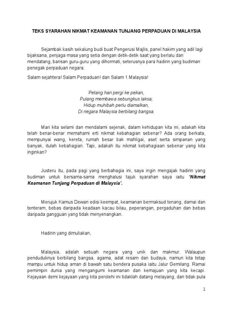 Teks Syarahan Bahasa Melayu from imgv2-1-f.scribdassets.com Tajuk syarahan saya pada pagi ini ialah 'faedah menabung'. 2020wakil pasukan catur ppd pasir mas ke mssk 2020hakimah syahirah dari tingkatan 4naib johan pertandingan tilwah al quran lelaki dan perempuan zon 122018johan pertandingan syarahan bahasa melayu sekolah rendah peringkat negerijohan pertandingan blog peringkat zon 4tempat ketiga pertandingan kawad kaki kadet remaja sekolah peringkat daerahpenyertaan pelajar dalam kontijen. Contoh teks pidato bahasa melayu. Anda telah terpilih untuk mewakili sekolah dalam pertandingan syarahan. Besarlah harapan saya agar permohonan saya ini diperkenankan. Tahun 1, 2, 3, 4, 5, 6. Karangan bahasa melayu (bm) upsr : Kami berharap agar blog ini nanti boleh menjadi rujukan kepada para pelajar.