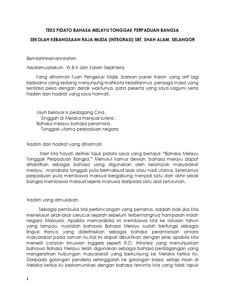 Teks syarahan bahasa melayu peringkat kebangsaan.